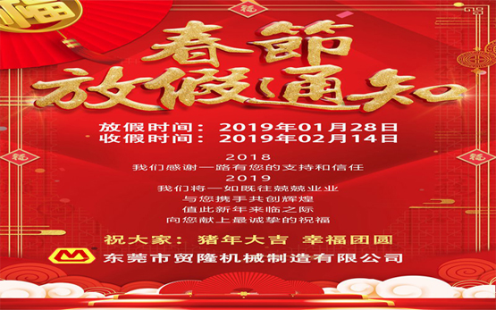 东莞贸隆机械春节放假通知